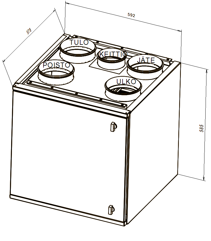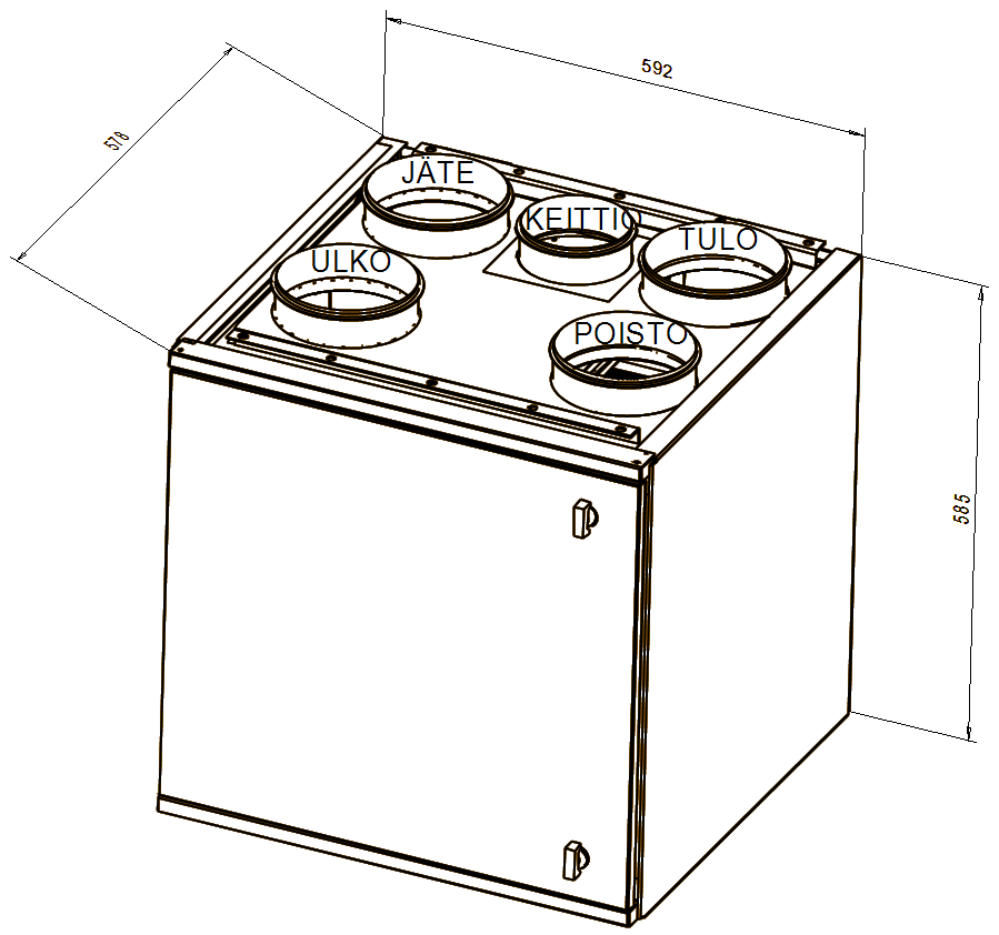 - koneeen kattoasennuslevy tai asennussarja seinäkiinnitykseen tilattava erikseen