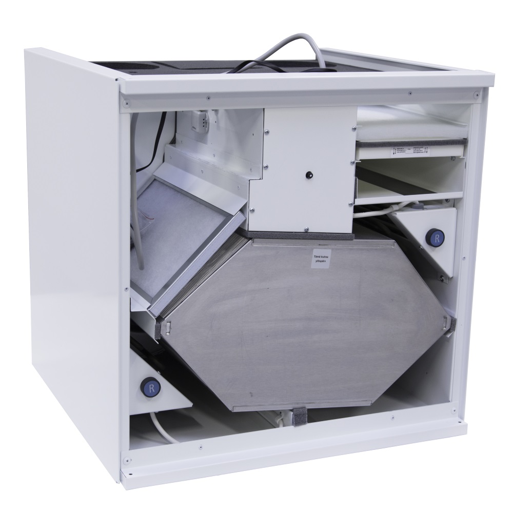 - lämmöntalteenotto poistoilmasta tuloilmaan vastavirtakennolla