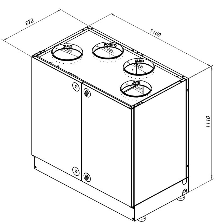 - lämmöntalteenotto poistoilmasta tuloilmaan vastavirtakennolla