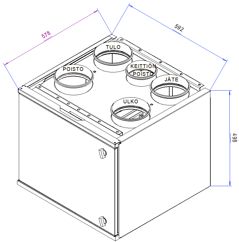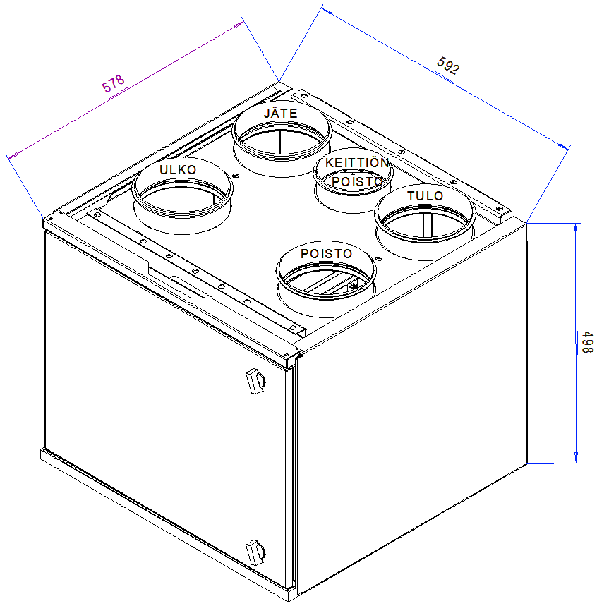 Mitat: Korkeus 498 mm, Leveys 592 mm,