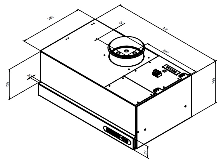- VPTS-ULTRA kuvun sähkönsyöttö 230V/50 Hz Ilmastoinnin ohjaus, muuntajasäädin 350 W
