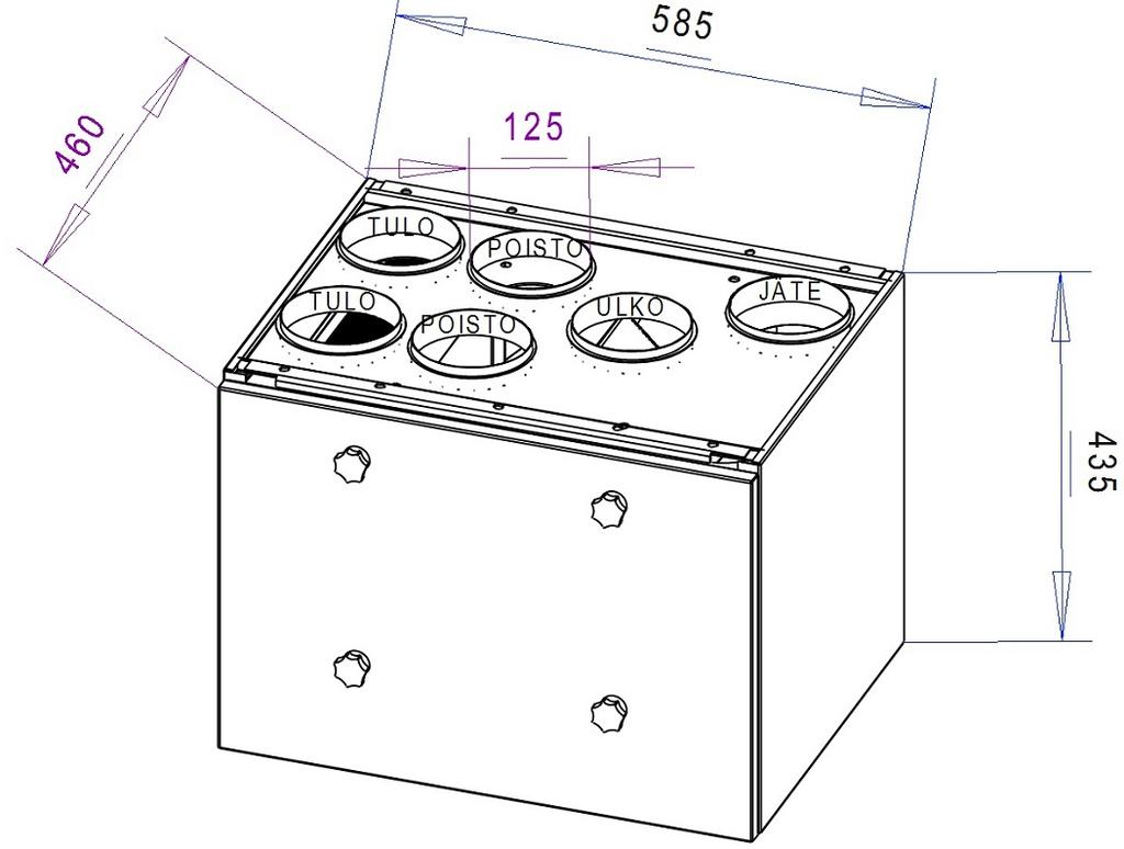 Mitat: Korkeus 435 mm, Leveys 585 mm,