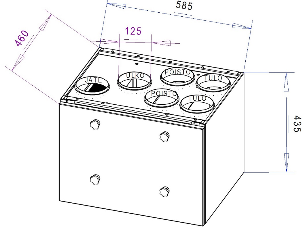 - max ilmamäärä tulo/poisto 87/104 l/s 100 Pa