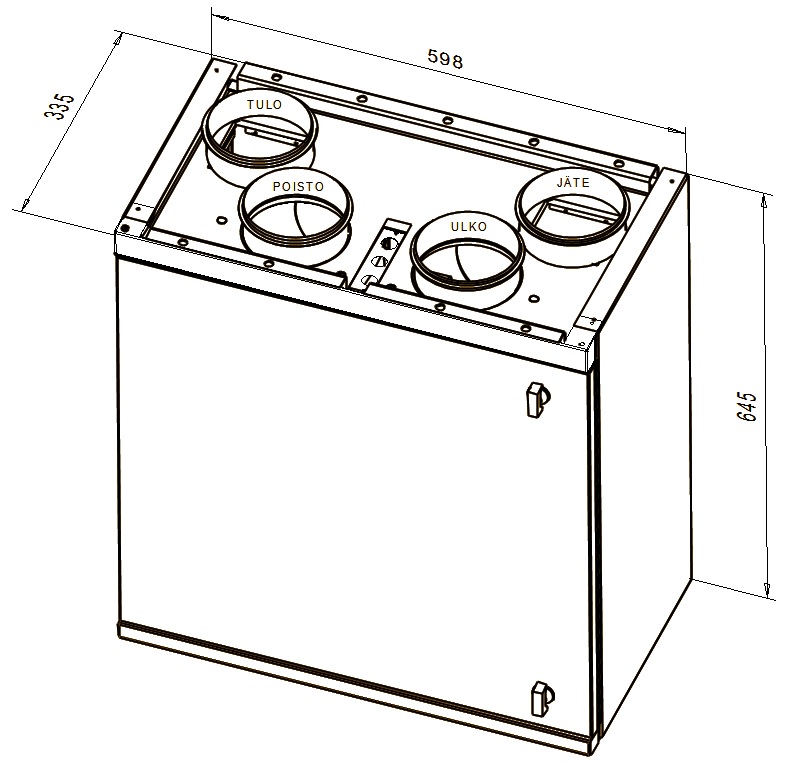 Mitat: Korkeus 645 mm, Leveys 598 mm,