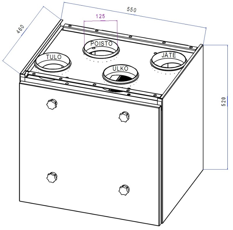 Mitat: Korkeus 520 mm, Leveys 550 mm,