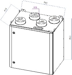 - Kanavalähdöt 4 x ø125 ulkoliitin